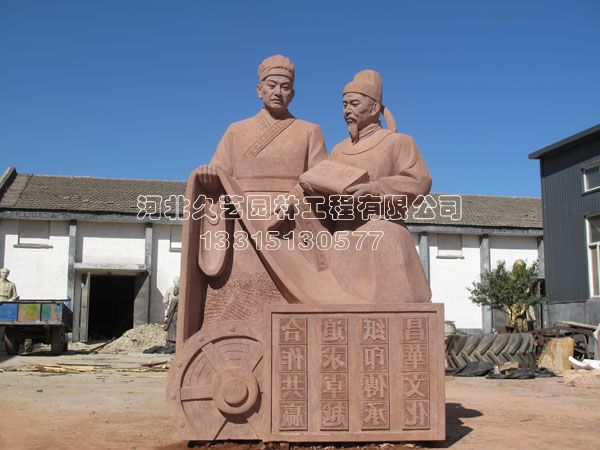 一、雕塑名稱:蔡倫畢昇紅砂巖石雕